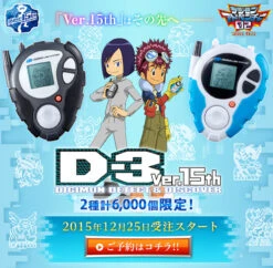 To celebrate the reservation start of the first appearance become D-3 Ver.15th, of possible past released to play in conjunction with the resale of “Digivice Ver.15th series” decision this time. Yagami Taichi color Ishida Yamato color animation original color three reserve December 25 (gold) 11 will be simultaneous start time.