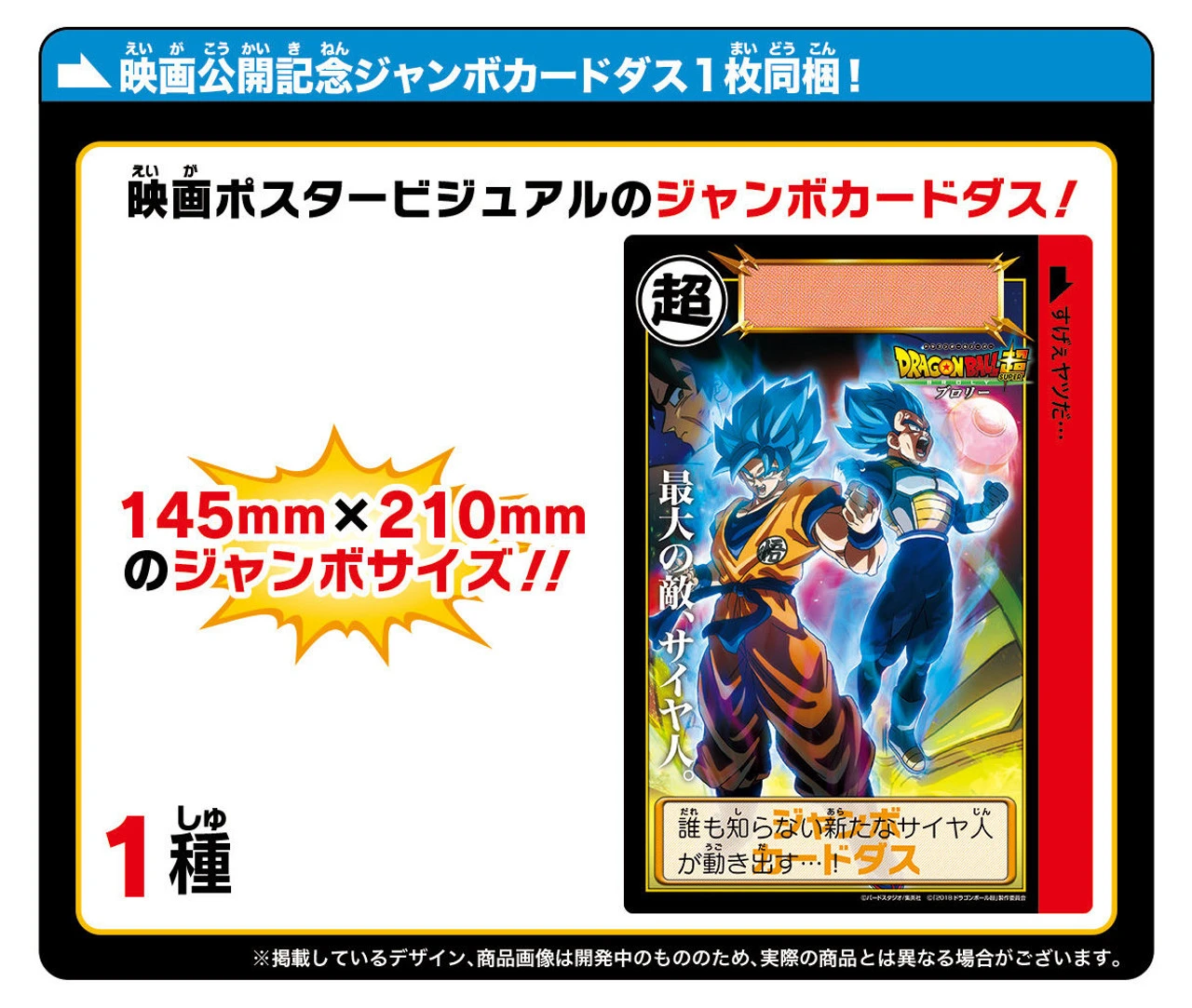 This product is a complete complete set of 84 kinds of cards, a special 6 pocket binder that can store all cards, a special scouter card that you can see the fighting ability hidden on the card, a special booklet! ! In addition, Jumbo Cardas using movie posters and visuals is also included! !
