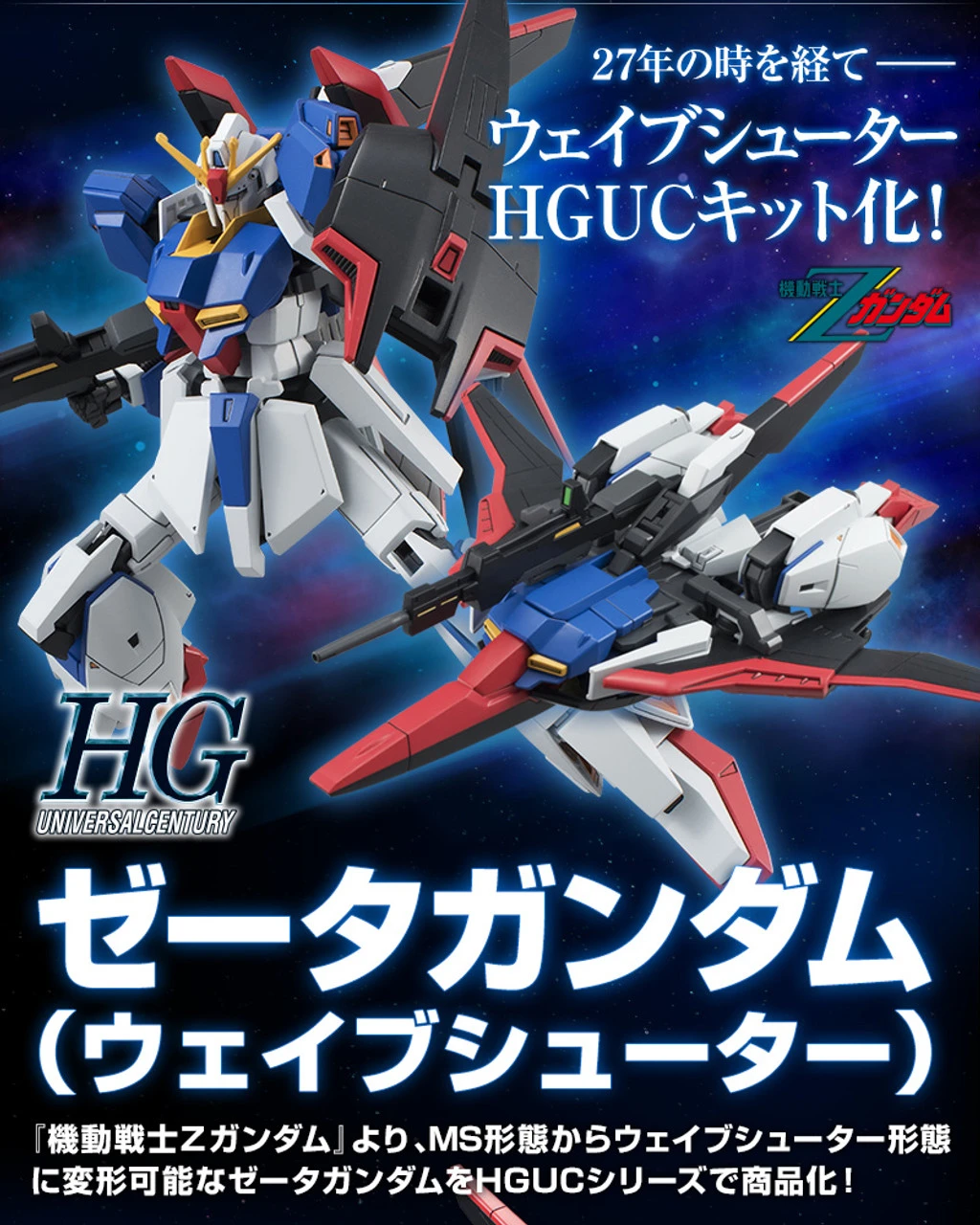 From “Mobile Suit Z Gundam”, Zeta Gundam transformable from MS form to Wave shooter form, commercialized in HGUC series!