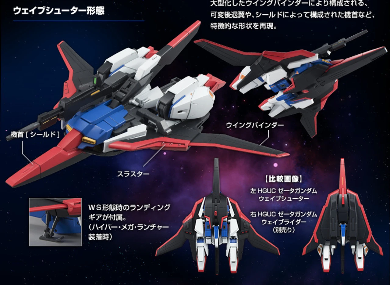 Equipped with wing binder, reproduces the Zeta Gundam with a deformation mechanism to the wave shooter form.