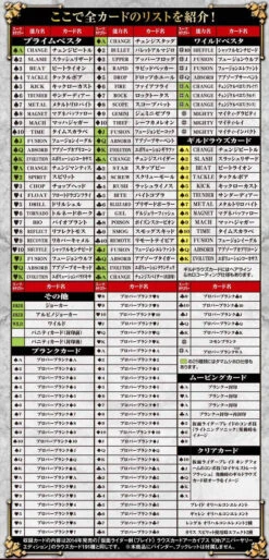 Furthermore, in addition to the clear specification card which imaged the makeover effect “Oriharukon Element” in the play, the clear specification card which imaged the special move “Royal Straight Flash” effect of “Kamen Rider Blade King Form” is recorded. Furthermore, as a moving specification card with moving patterns in the inside, “Kick”, “Sander” and “Mach” to be used for “Rider Sonic” and their special technique “Lightning Sonic” are included.