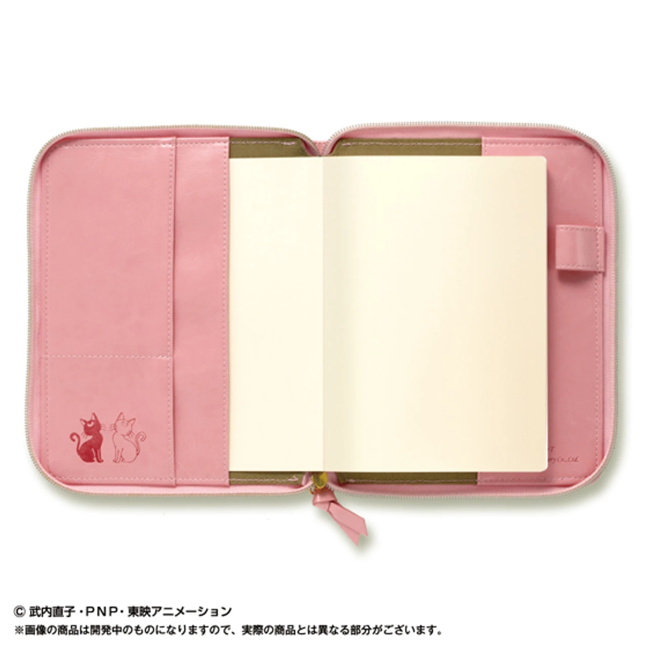 Notebook cover, use a fake leather feeling of luxury that fits in the hand, illustration of antique has been embossed. Metal plates point that the “crisis Moon compact” motif! The size B6 deformation size, the cover inside or pocket to put a business card, there is also a space that can hold a pen, storage capacity is also excellent!