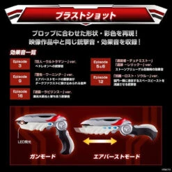 From “Ultraman Nexus” which was broadcast in 2004, a small shock wave gun “blast shot” given to a person = Dunamist who can transform into a transformation item “Ebolt Raster” and Ultraman is “Ultra Replicas for Adults” It is in the series. By designing the appearance based on the prop (prop) used at the time of the program broadcasting, changing the internal structure from the toy at the time of broadcasting, and designing a new one, the LED light emission approached more expressive in the play.